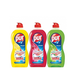 - Pur este un detergent de vase cu dubla putere, eliminand fara probleme cele mai dificile pete de grasime sau cruste de pe vase, fara a fi necesar sa inmoi vasele mult timp.