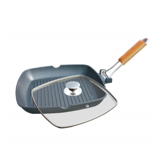 Tigaie tip grill cu capac, din aluminiu, cu teflon